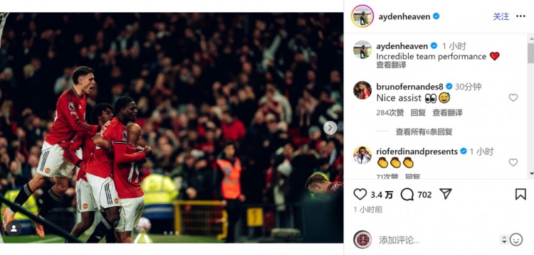 海文更新社媒动态,晒出球员们庆祝的照片,配文:“不可思议的团队表现。”