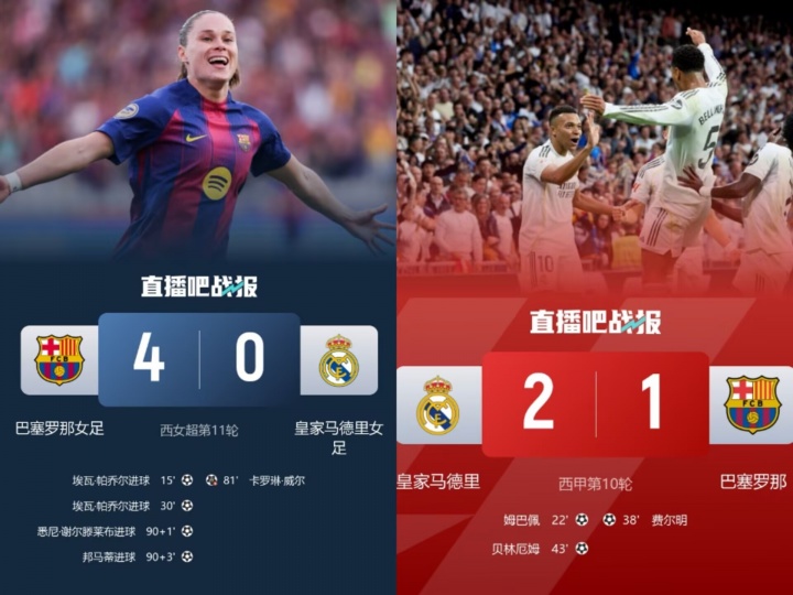 给男队打个样?巴萨女足4-0皇马女足,此前巴萨男足、男篮均输球